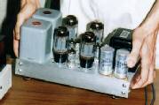 というわけで、さっさと6L6GBを載せてしまった写真が右です。いかにちいさいアンプであるかがおわかりいただけると思います。